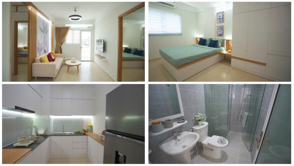 Thiết kế tối ưu trong từng chi tiết: gói gọn trong diện tích từ 38-67 m2 có thể bố trí 2-3 phòng ngủ, 1-2 phòng vệ sinh, phòng bếp tiện nghi, ấm cúng; toàn bộ căn hộ đón gió và ánh sáng ngập tràn.